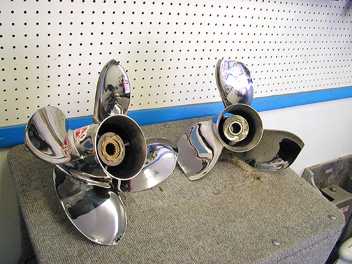 Custom designed 3 and 4 blade Stainless Propellers for most mid gear case 50 thru 250 horsepower motors. Starting at $480.00 our 3 blade propellers are more fuel efficient and have a faster top end. The 4 blade, starting at $580.00, is faster out of the hole, has more torque, and provides less steering torque and less vibration at high speeds.